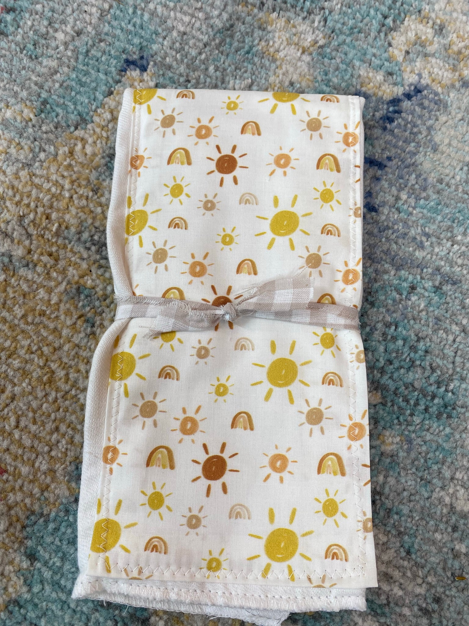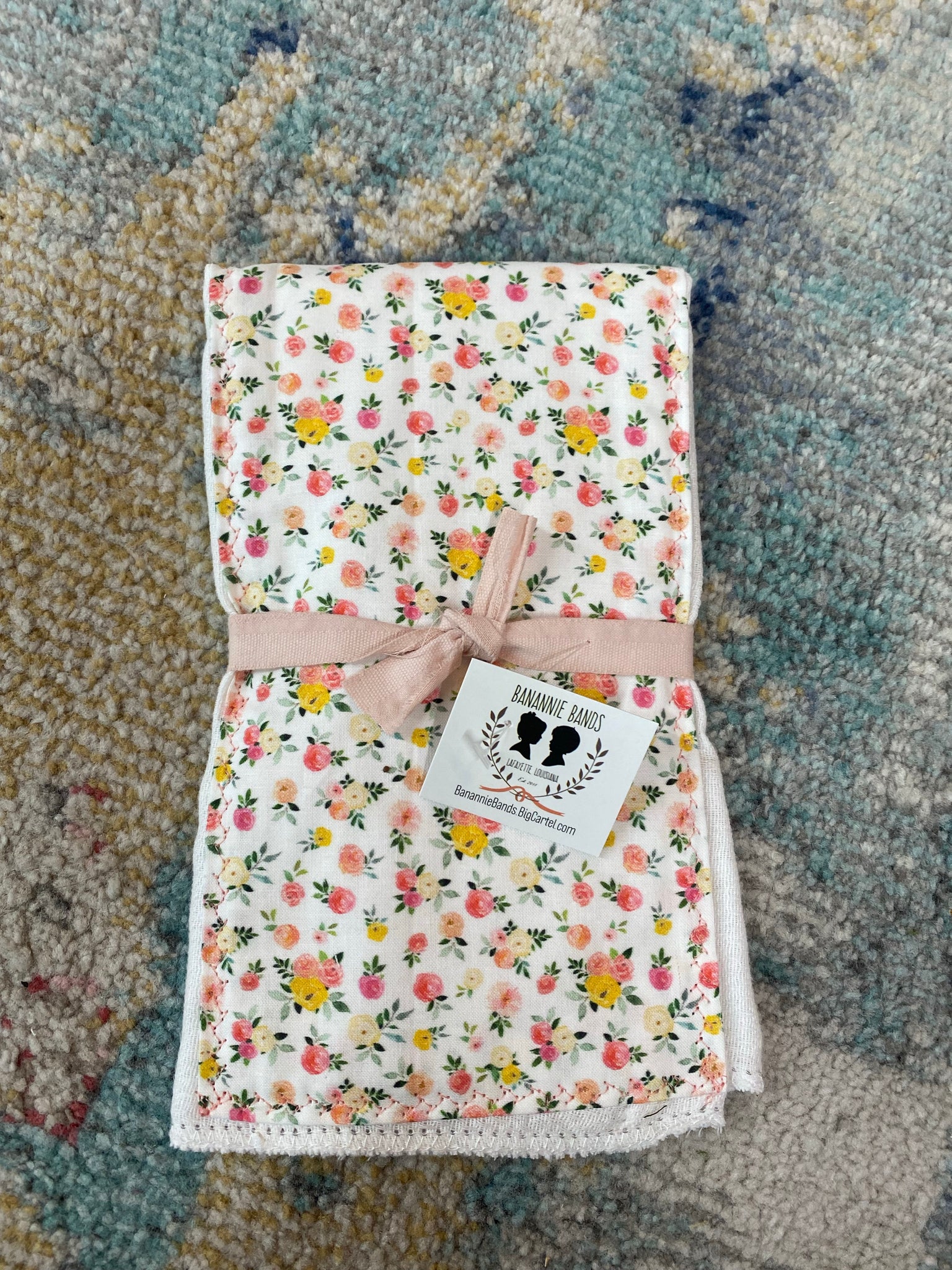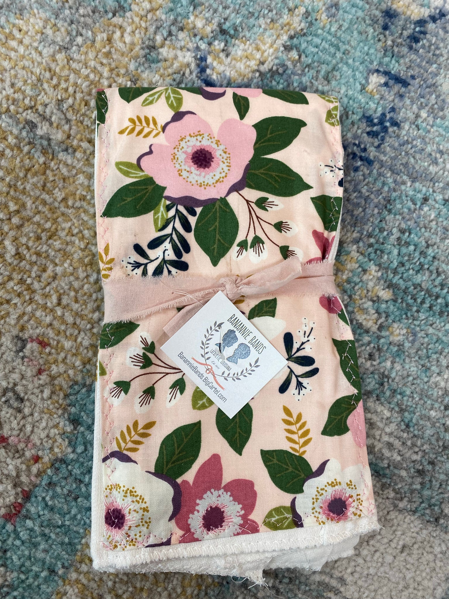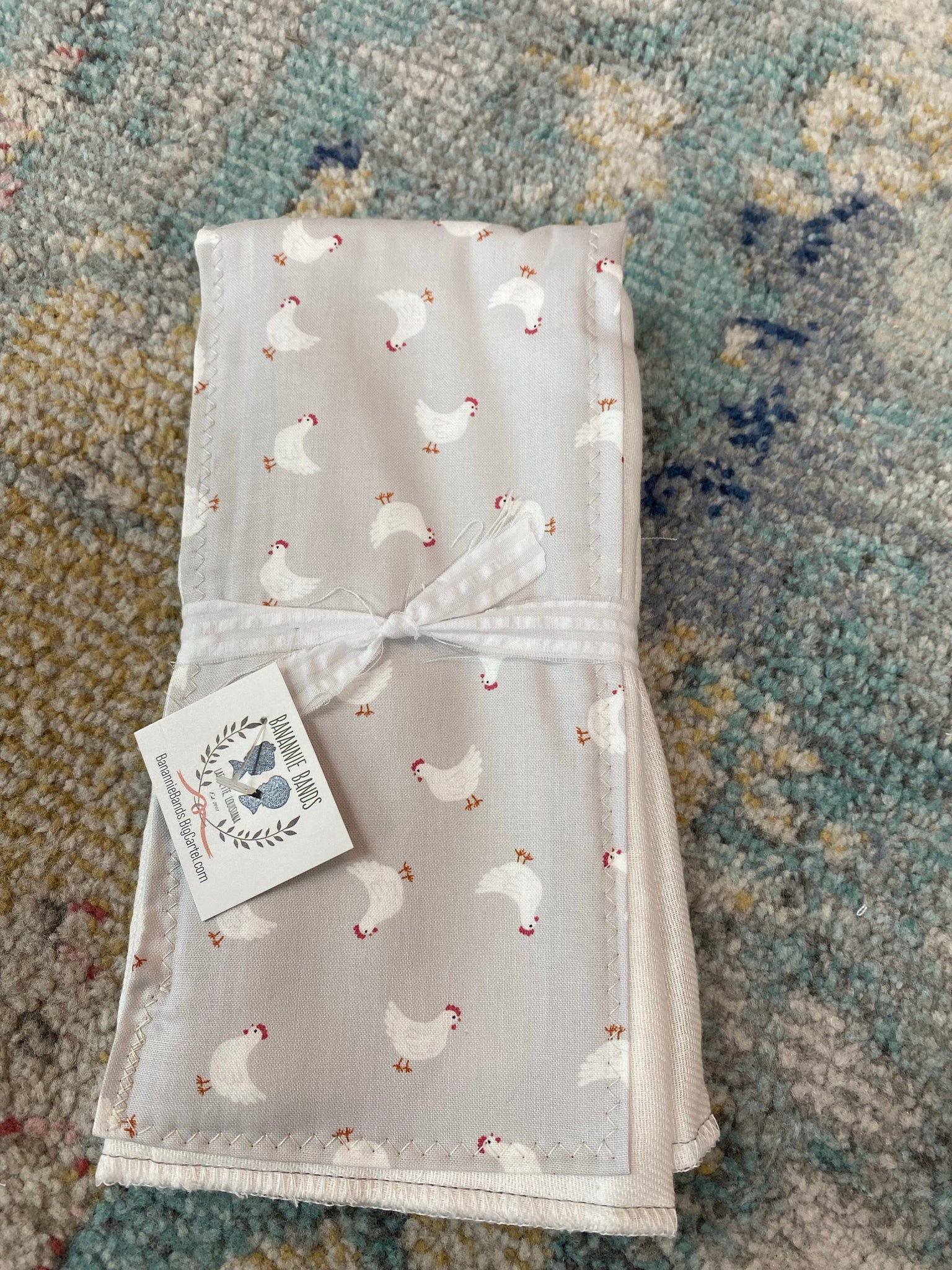 Burp cloths are made of an absorbent Gerber cloth diapers and 100% cotton fabric. These are a great addition to a baby shower gift!