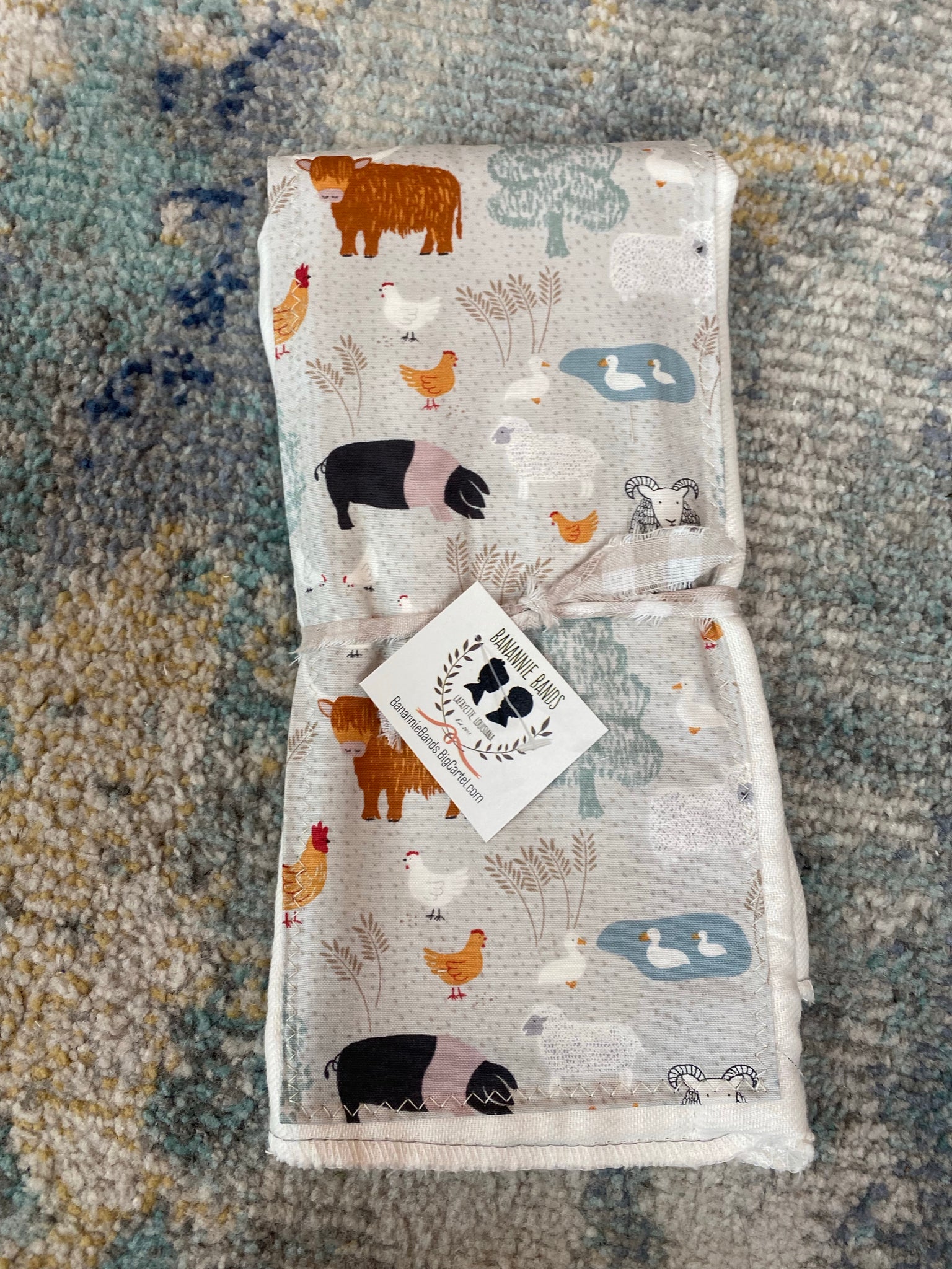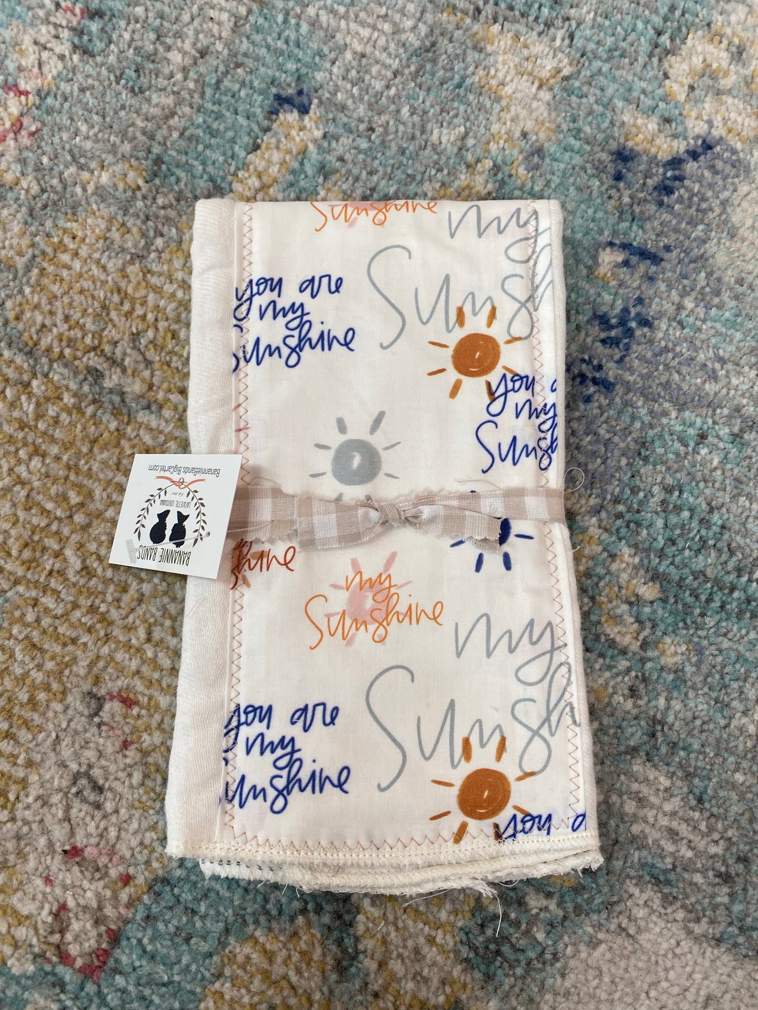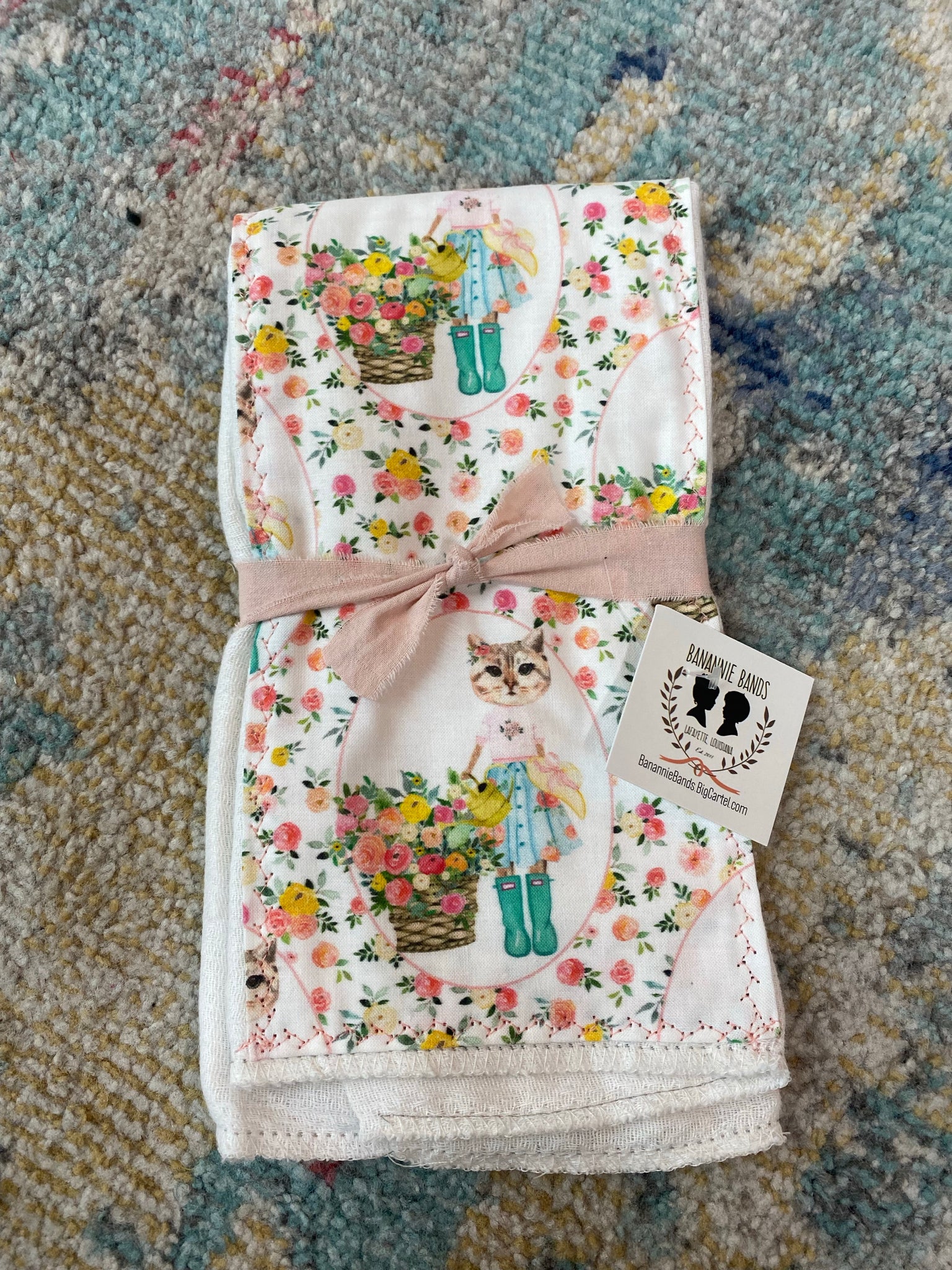 Burp cloths are made of an absorbent Gerber cloth diapers and 100% cotton fabric. These are a great addition to a baby shower gift!