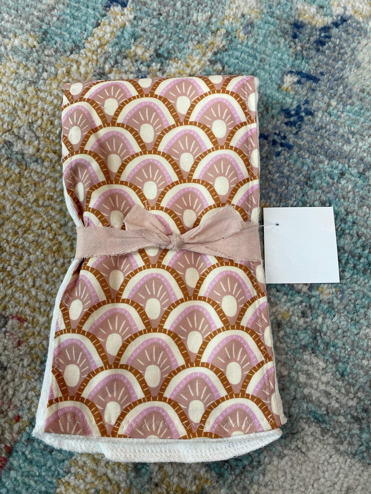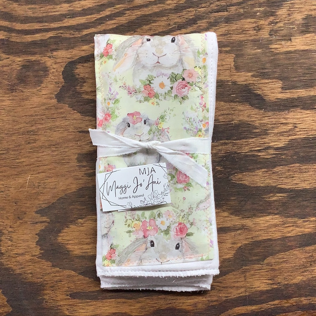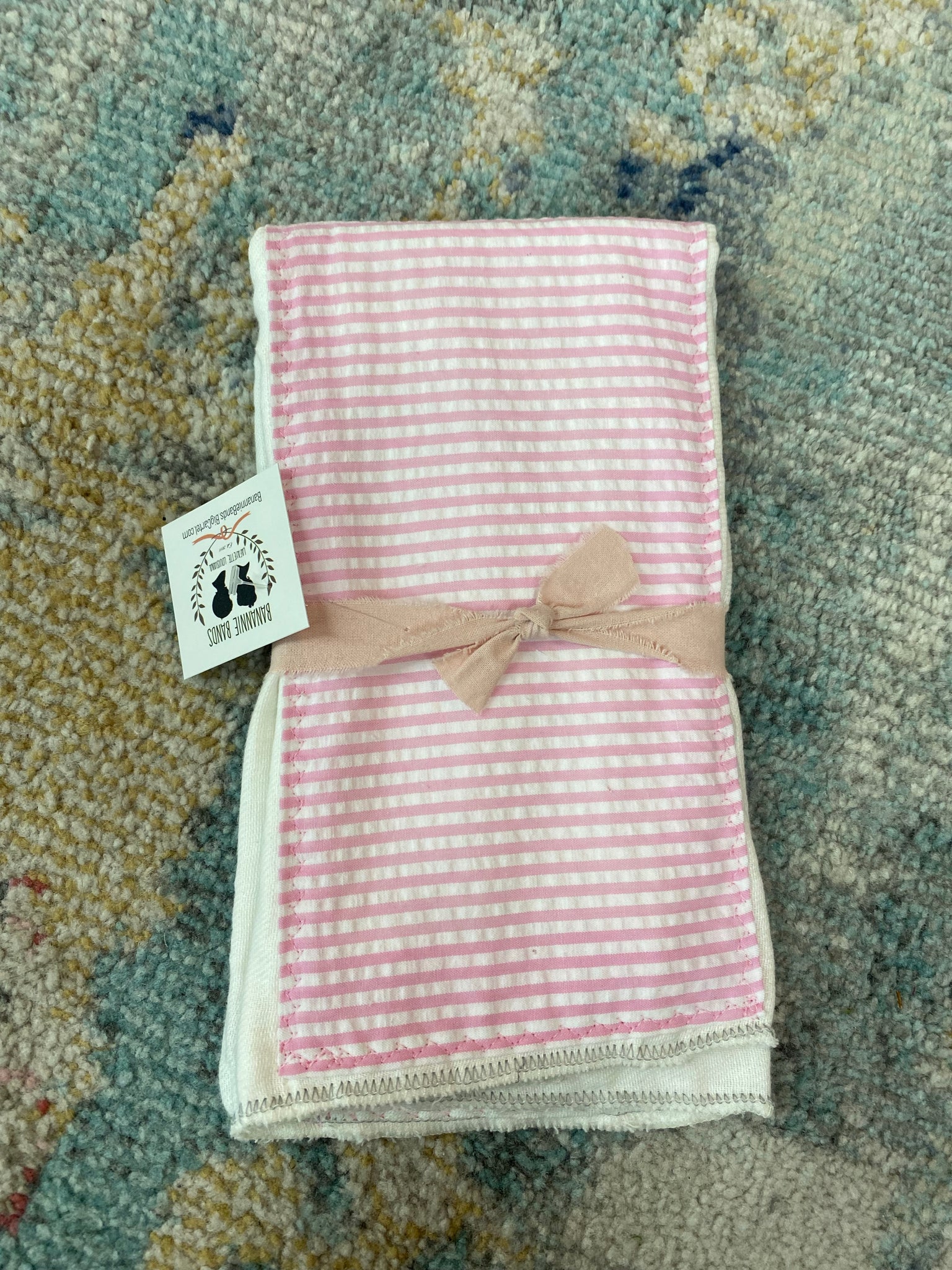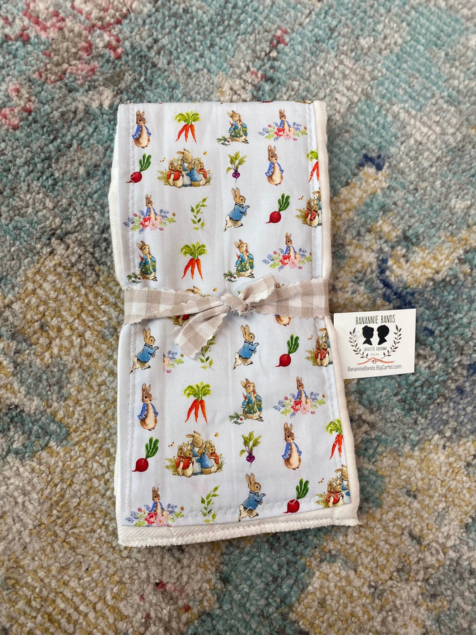 Burp cloths are made of an absorbent Gerber cloth diapers and 100% cotton fabric. These are a great addition to a baby shower gift!