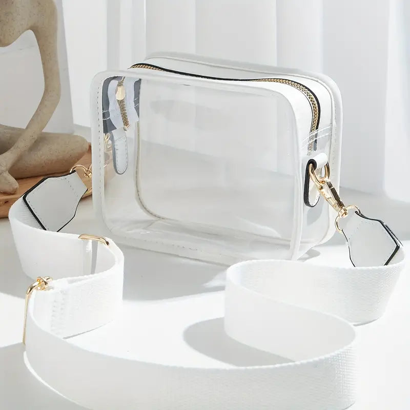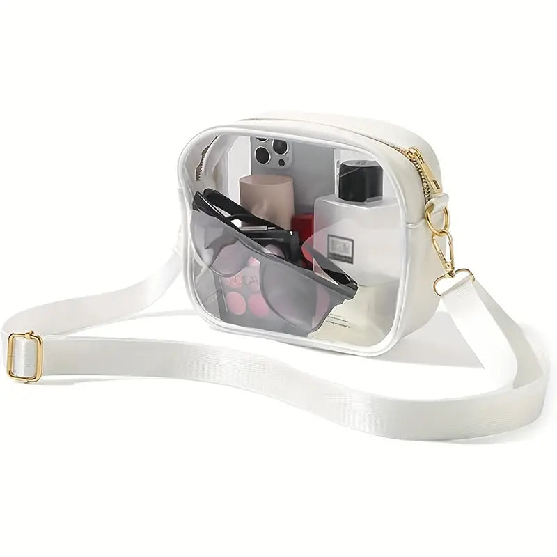 Transparent Crossbody Medium Bag, Trendy Square Bag Clear Shoulder Bag For Event Stadium Approved, Adjustable Strap Tote.