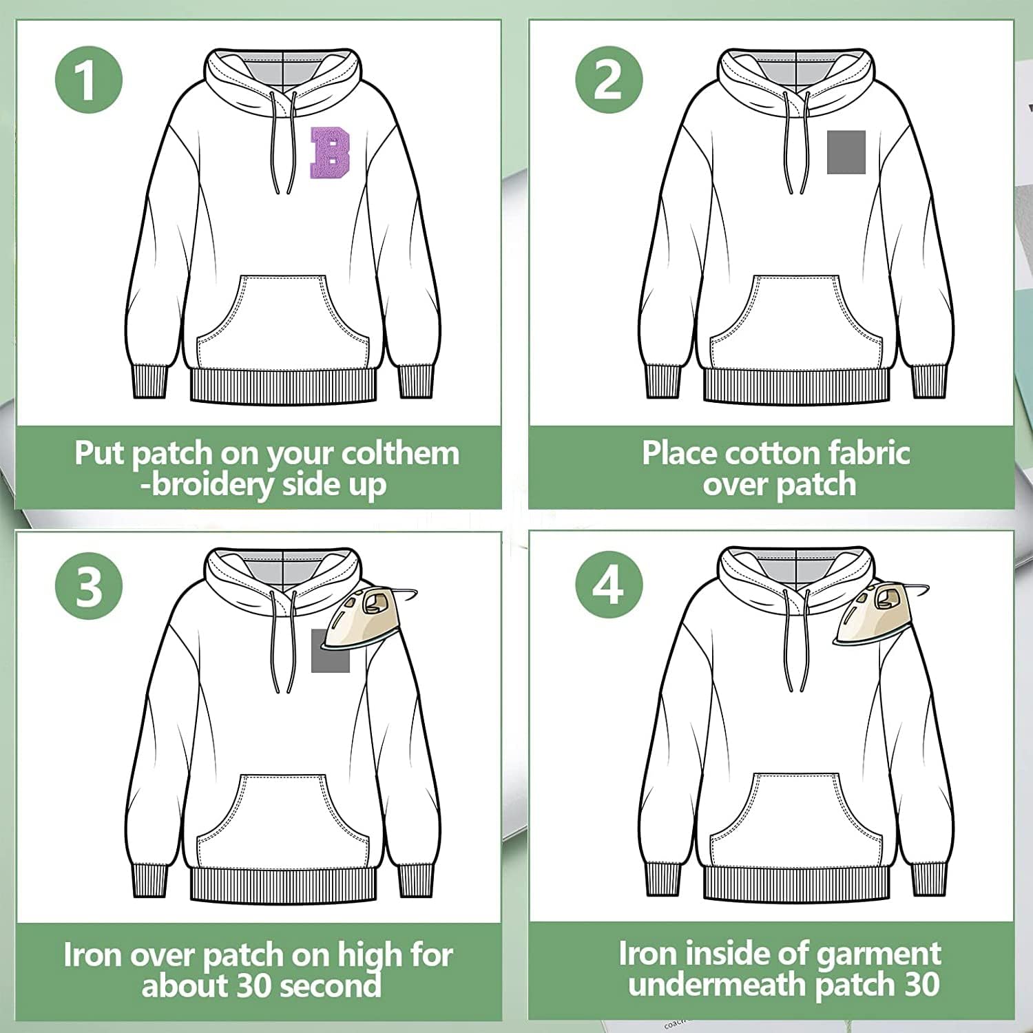 1. Keep the back of the patches and there paired clothing clean before use;