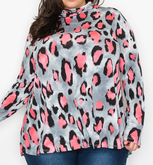 MOCK NECK LEOPARD PRINT LONG SLEEVES TOP (PLUS SIZE)