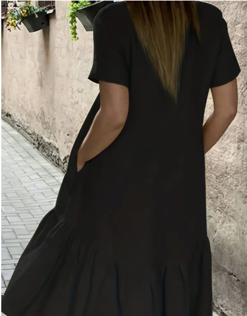 Hi-Lo Short Sleeve Midi Dress with Pockets (Plus)