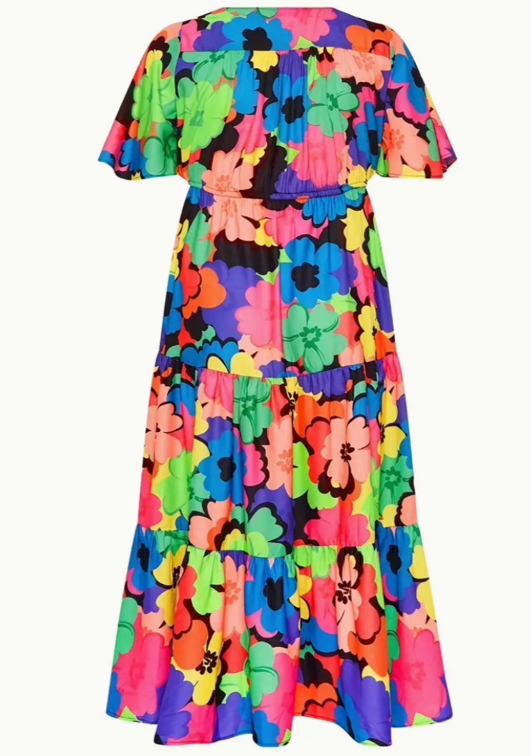 Classic Aline V Neck Gathered Waistline Maxi Dress