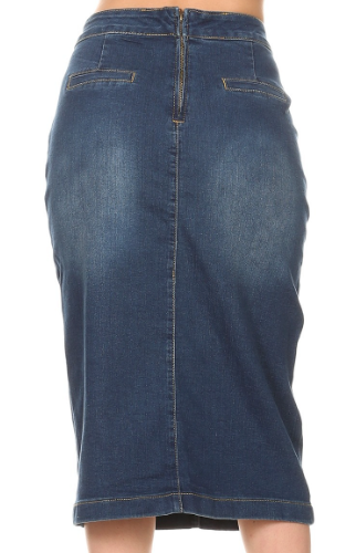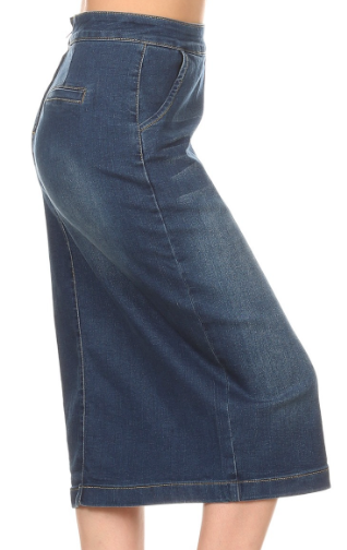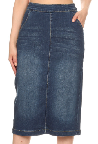 Black Denim Midi Skirt - Elastic Waistband (XS-XL)